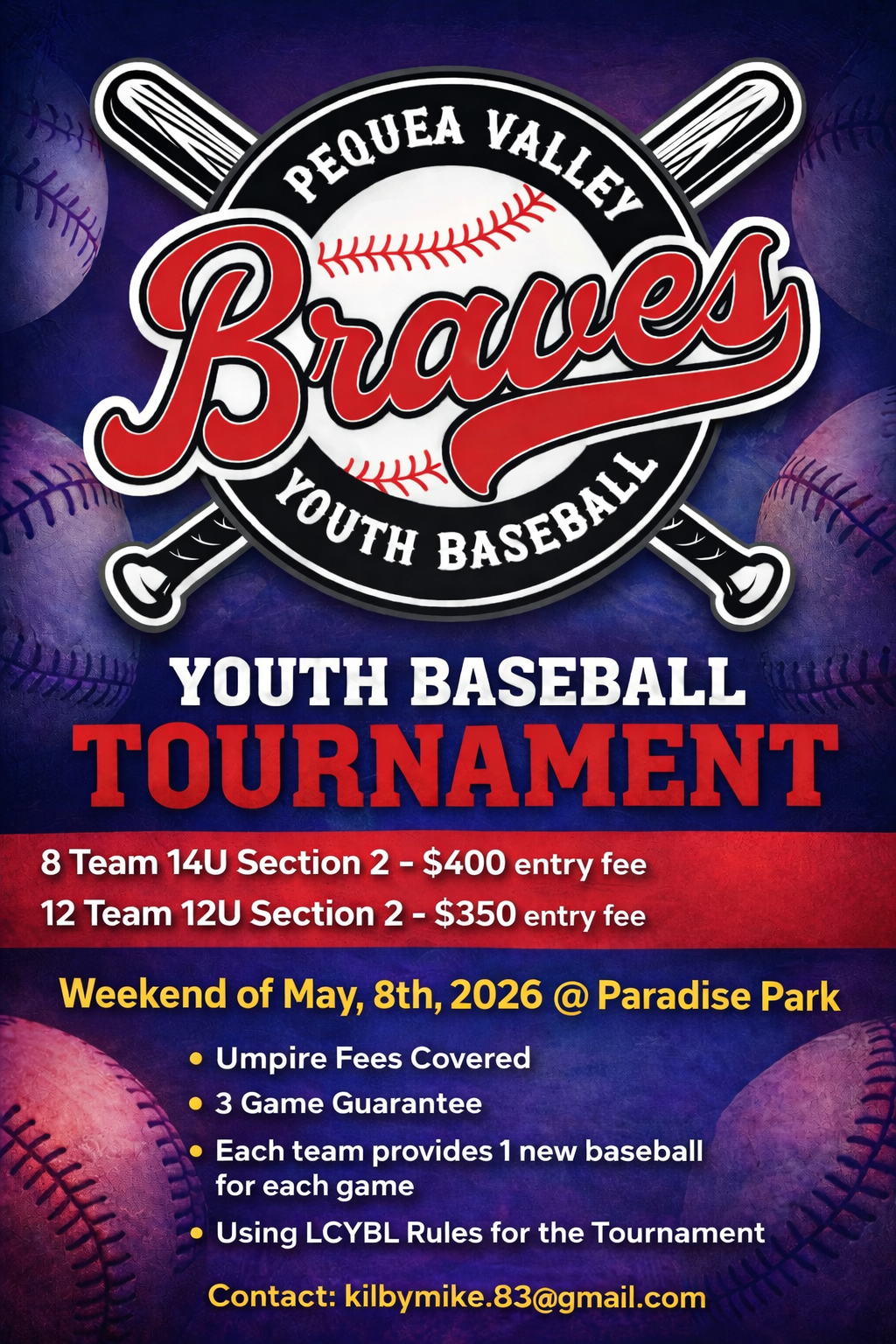 14U3 Tournament- May 16th-18th, $400/per team, 8 team max, at Kunkle Field and Fuhrman Park